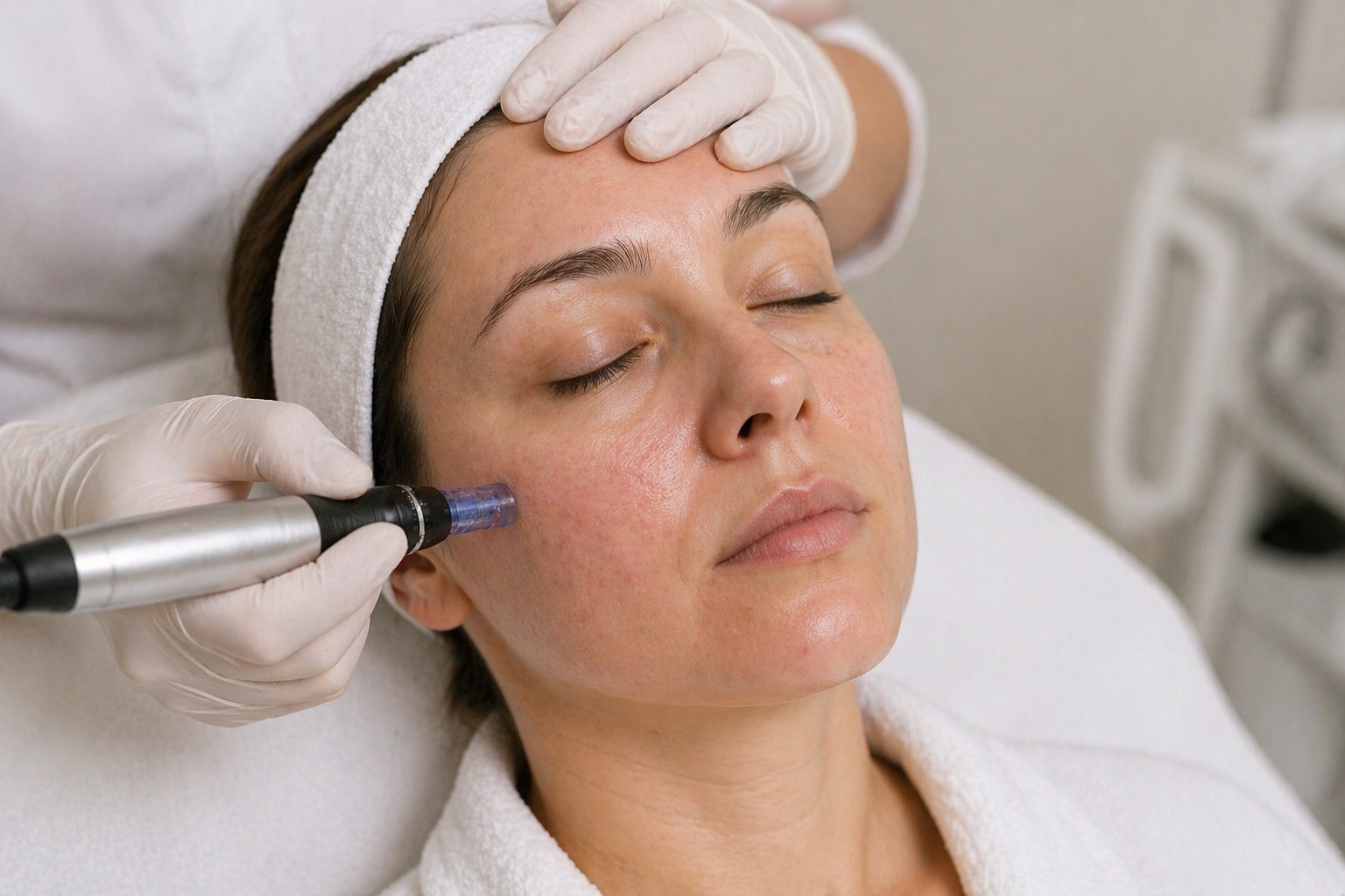 A kezelés során modern dermapen technológiát alkalmazunk, amely mikrotűk segítségével apró csatornákat hoz létre a bőrben. Ez egyrészt aktiválja a bőr öngyógyító folyamatait, másrészt lehetővé teszi, hogy a GHK-Cu peptid mélyebbre jusson, így maximális hatást fejtsen ki.